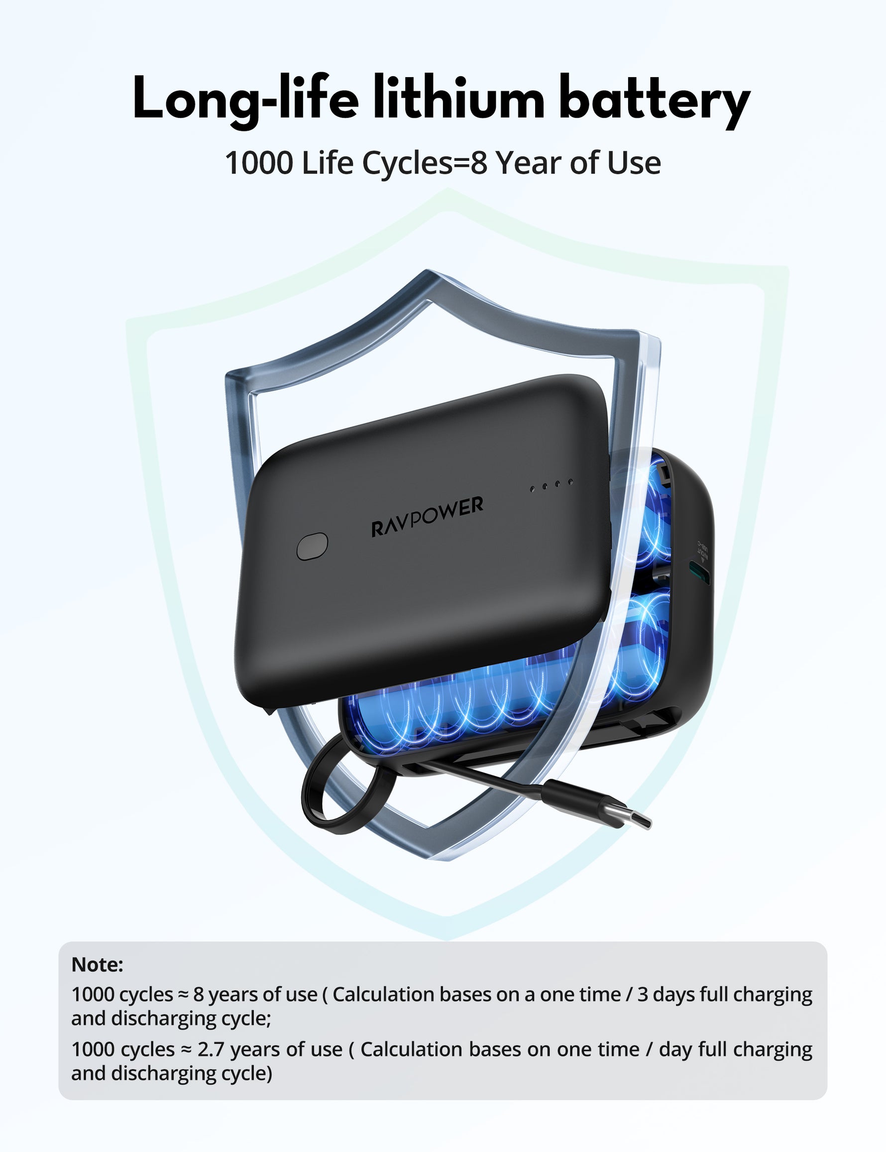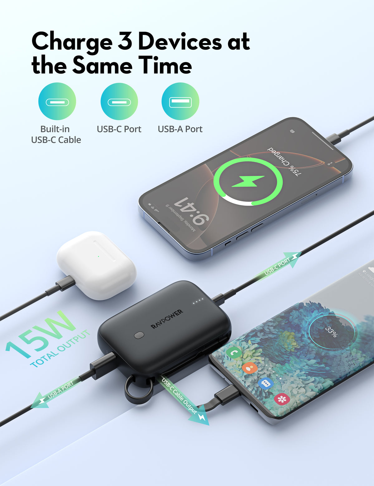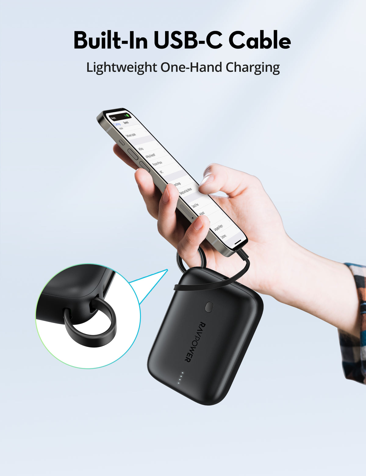 RAVPower PB-1224 Air 10000mAh PD20W Power Bank with Built-in Cable
