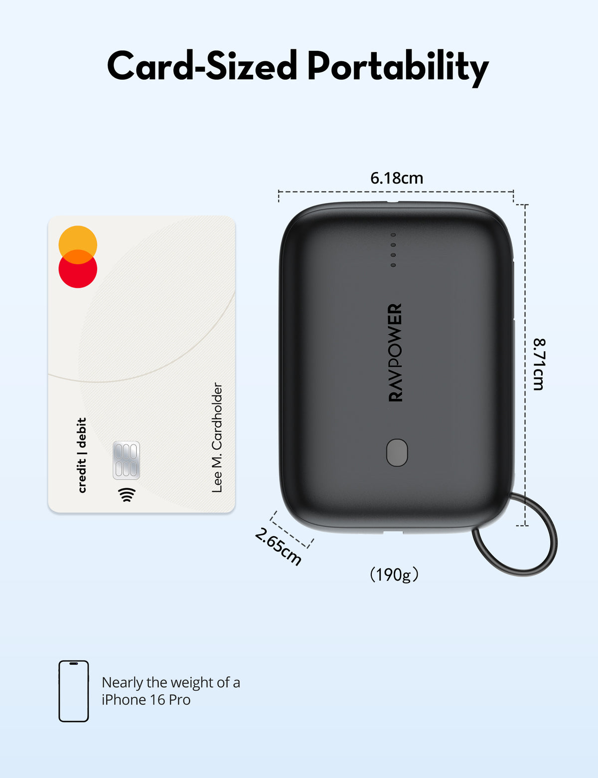 • Built-in USB-C Cable & Card-Size: Ultra-portable, tangle-free design for effortless one-hand carry.