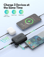 • 3 Devices at Once: Dual USB-C + USB-A ports to charge everything simultaneously