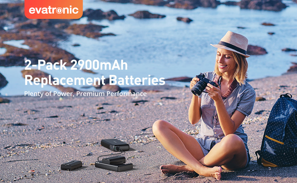 - 【Huge Battery Capacity】This battery is designed for Sony digital cameras, with a capacity of 2900mAh/20.88Wh and a dual fast charger, which makes it extremely easy to record every once-in-a-lifetime moment again. Evatronic battery also significantly increases the runtime of Sony digital cameras