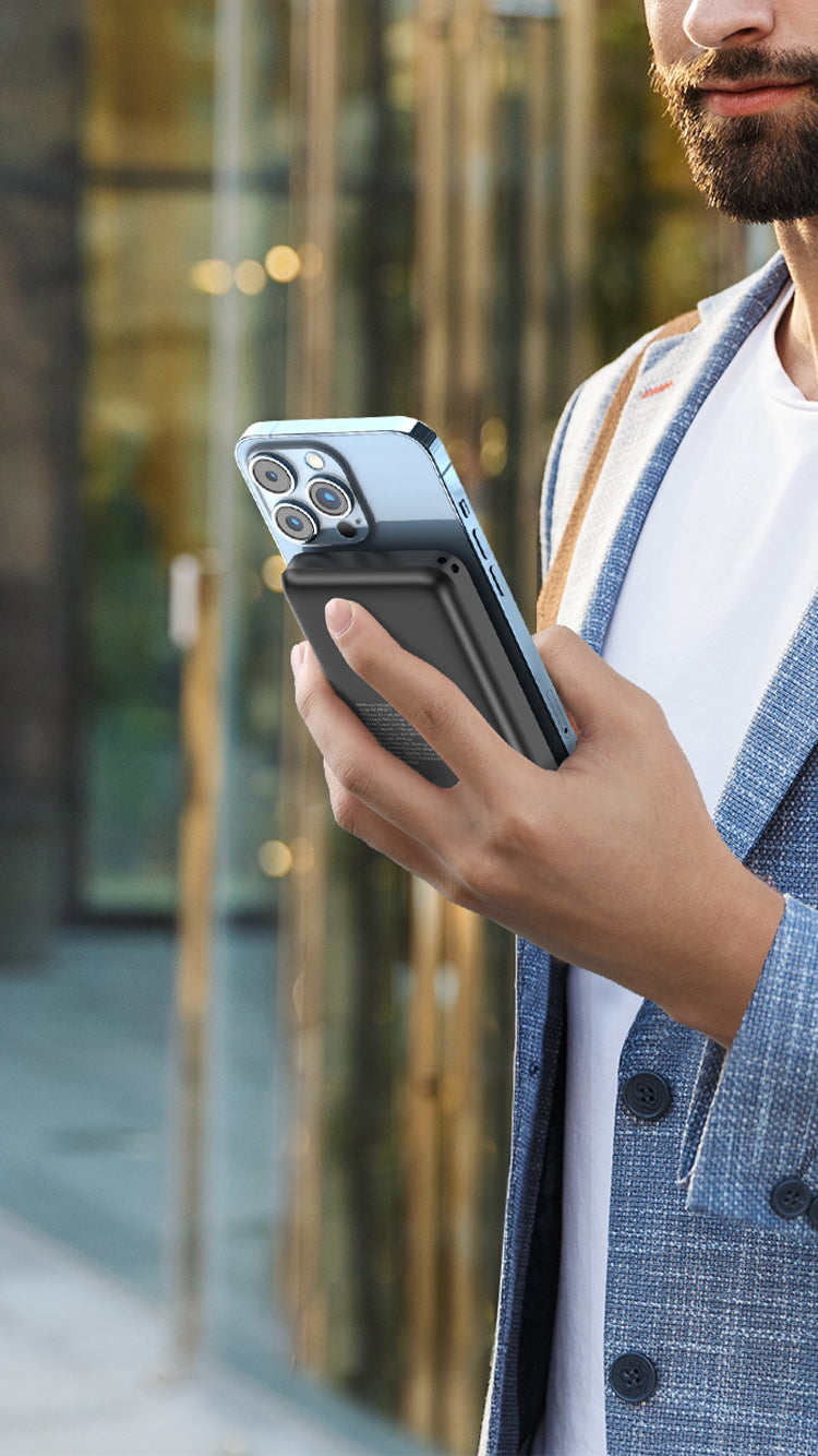 Strong magnetic absorption: Designed with a strong magnetic absorption feature, this power bank securely attaches to your compatible devices, ensuring a stable connection during charging.