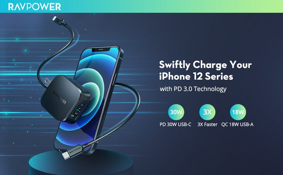 - 20W PD 3.0 Fast Charging for iPhone 12: Blazing fast speeds to power up iPhone 12 via the USB C output port, efficiently from 0 to 50% battery in only 30 minutes, saving you plenty of time