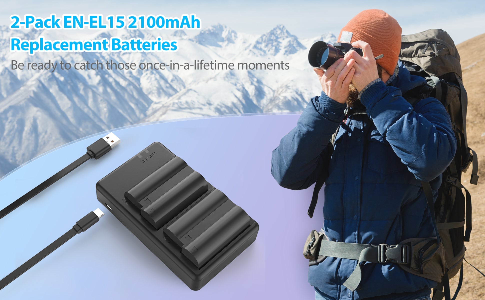 Portable, high-capacity batteries provide the power you need in a travel-friendly size to keep taking breathtaking shots wherever life takes you.