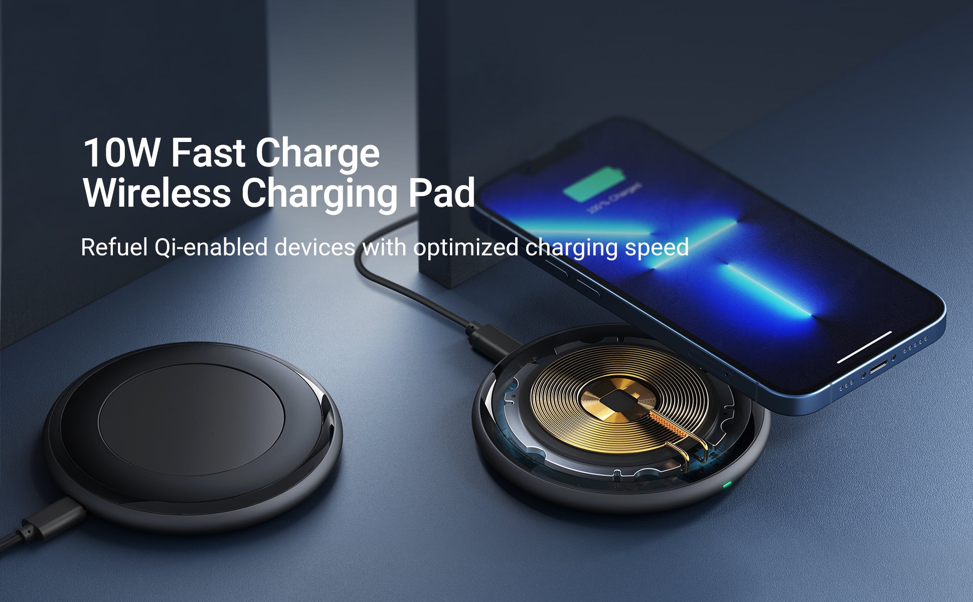 10W, 7.5W and 5W charging modes offer optimized charging speed to Qi-enabled devices including iPhone, Samsung Galaxy and more.