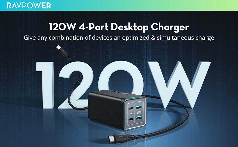 Ravpower 120W 4-Port Desktop USB Charging Station 2024
