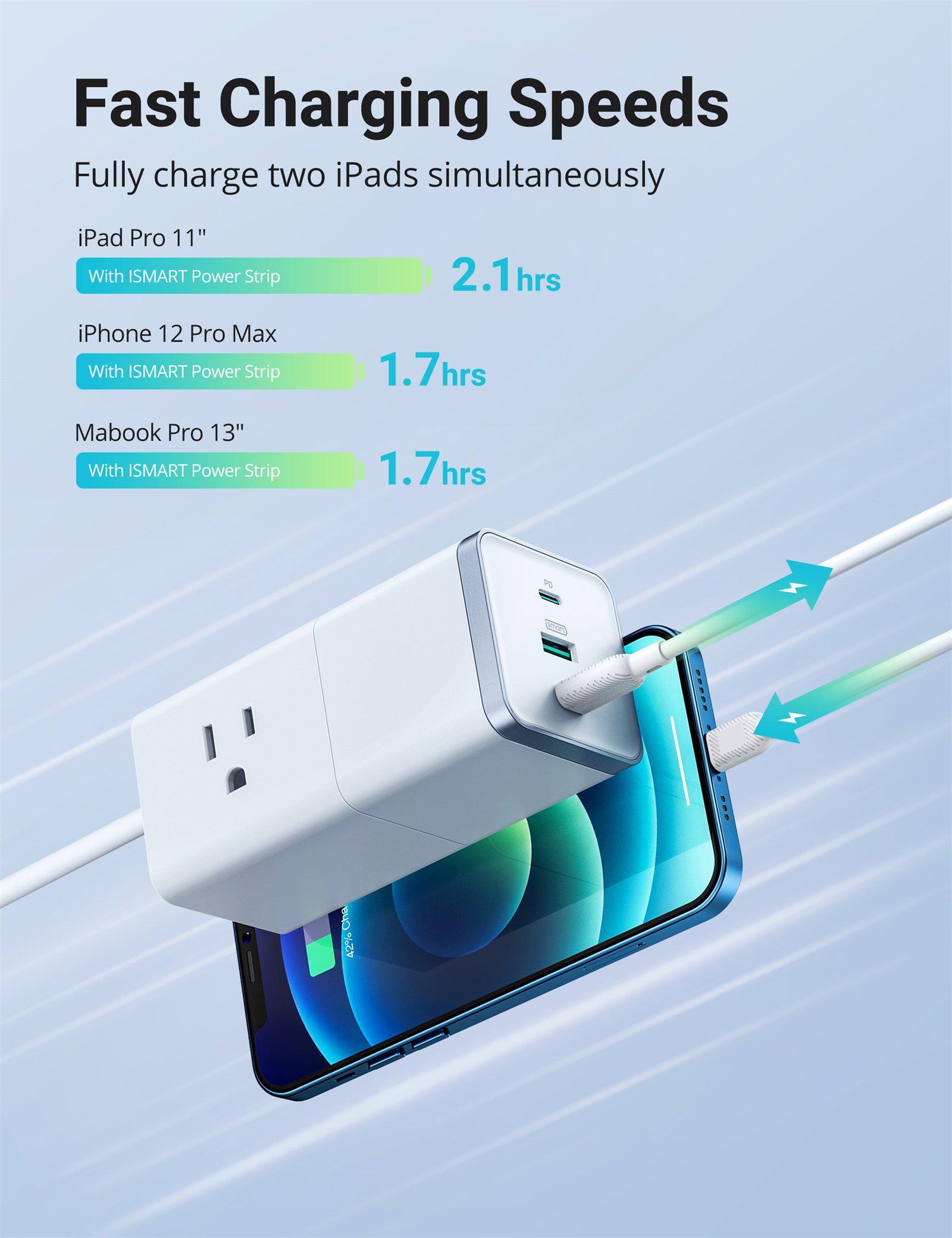 - High-Speed Charging: 2.5 times faster fueling for the iPhone 12 series to fully charge a iPhone 12 Pro Max in 1.75hrs, two iPad Pros (2020) in 2hrs, and also quickly charges MacBooks and other laptops